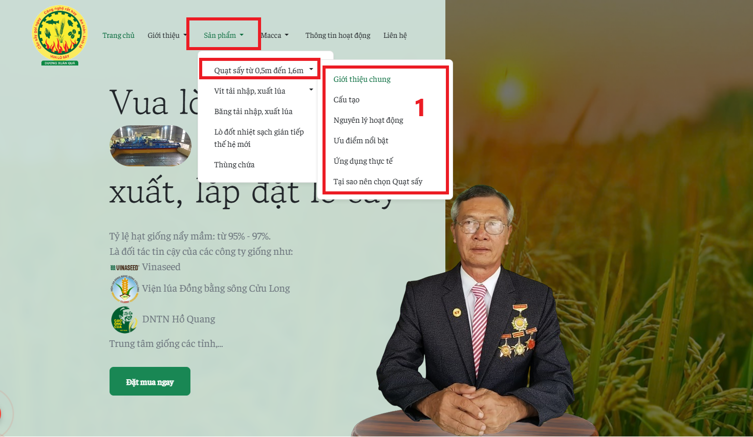 - Số 2: Chọn “danh mục cha” chứa danh mục con. Theo ví dụ sẽ chọn là “sản phẩm” do “Quạt sấy từ 0,5m đến 1,6m” là danh mục con và nằm trong danh mục cha “sản phẩm”.
