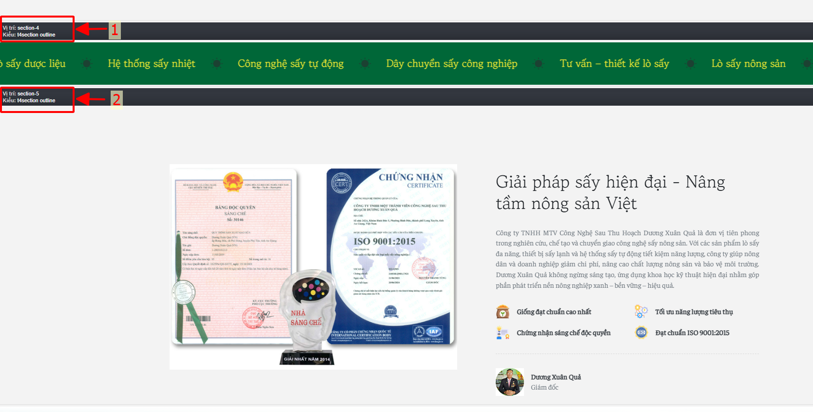 Bước 3: Sau khi chọn xem trước sẽ xuất hiện trang web ở trang chủ có các Module cần tìm, vị trí Module là “1. section-4” và “2. section-5”.