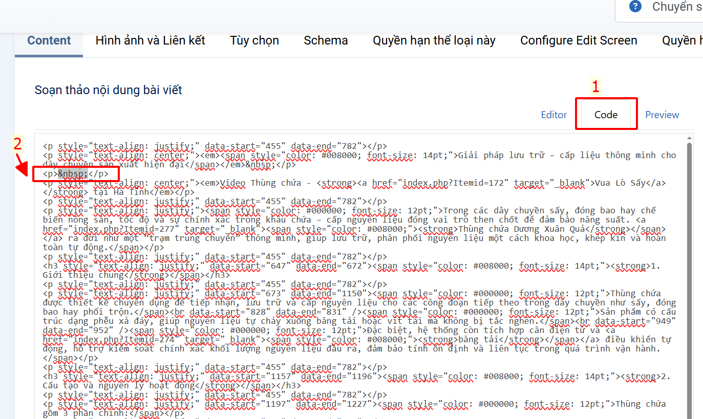 - Số 2: do enter xuống dòng nên sẽ có khoảng trắng, ở chỗ muốn chèn video anh/chị tìm dòng có chữ   (dòng này là khoảng trắng). Anh/chị xoá dòng code này   và ngay tại vị trí xoá dòng code chọn Ctrl + v để dán mã code của video vào.